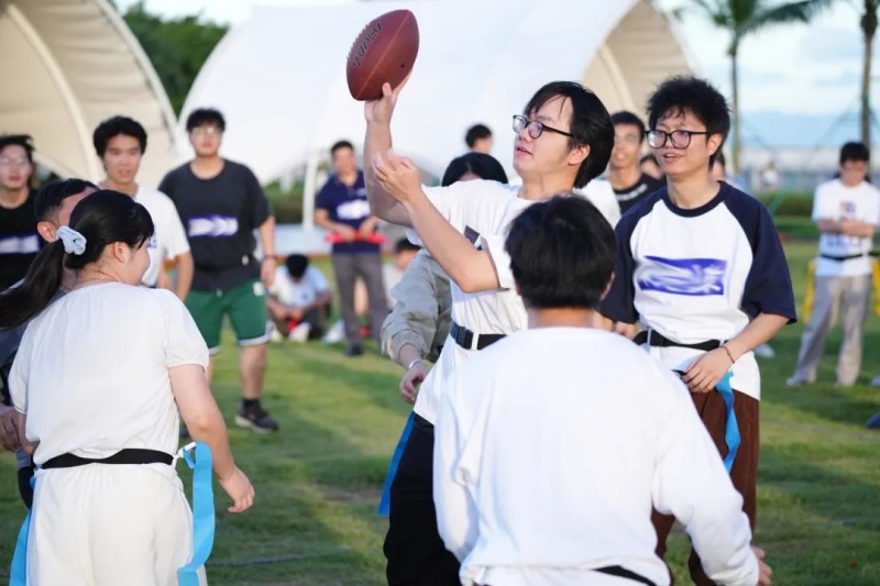 随后,“合力筑塔”、“腰旗橄榄球”,“挑战180秒”等游戏将活动推向高潮。队员们分组练习技巧,协同作战,挥洒汗水,各队你追我赶,既有精准的惊艳瞬间,也有失误的暖心鼓励。现场气氛热烈,欢笑声此起彼伏,在轻松愉快的氛围中,大家迅速融入了团队。